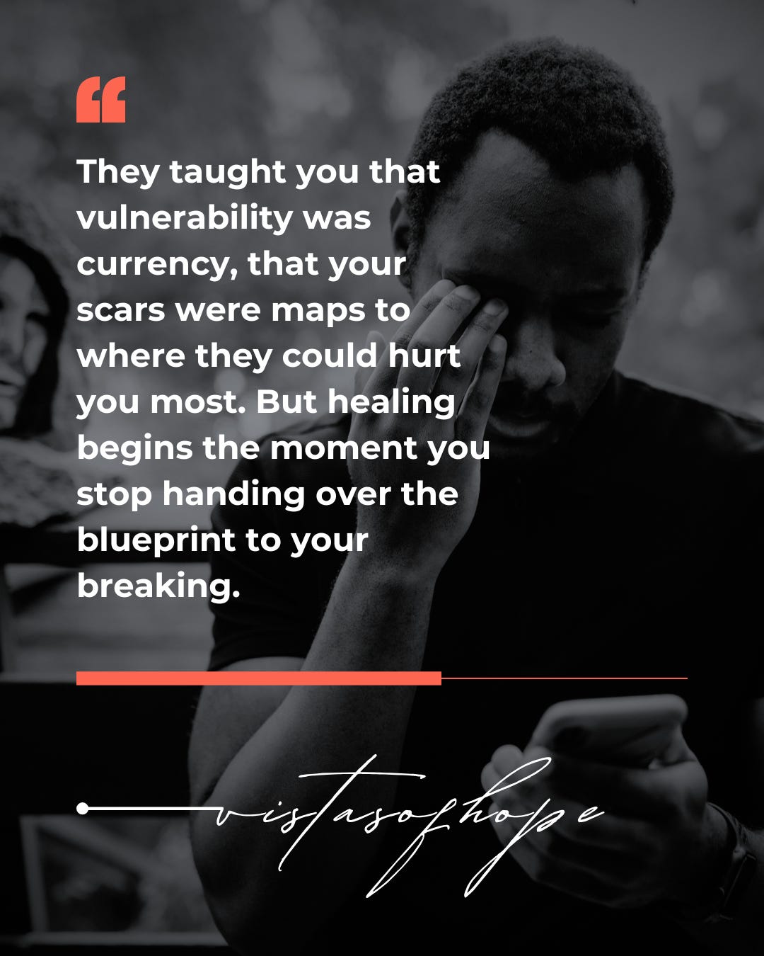 I need you to know something that no one ever told you when you were learning how to love with a heart that had already been cracked open too many times. Your trauma was never an instruction manual for how to hurt you. Your wounds were never an invitation for someone to press deeper into the places that already bled.